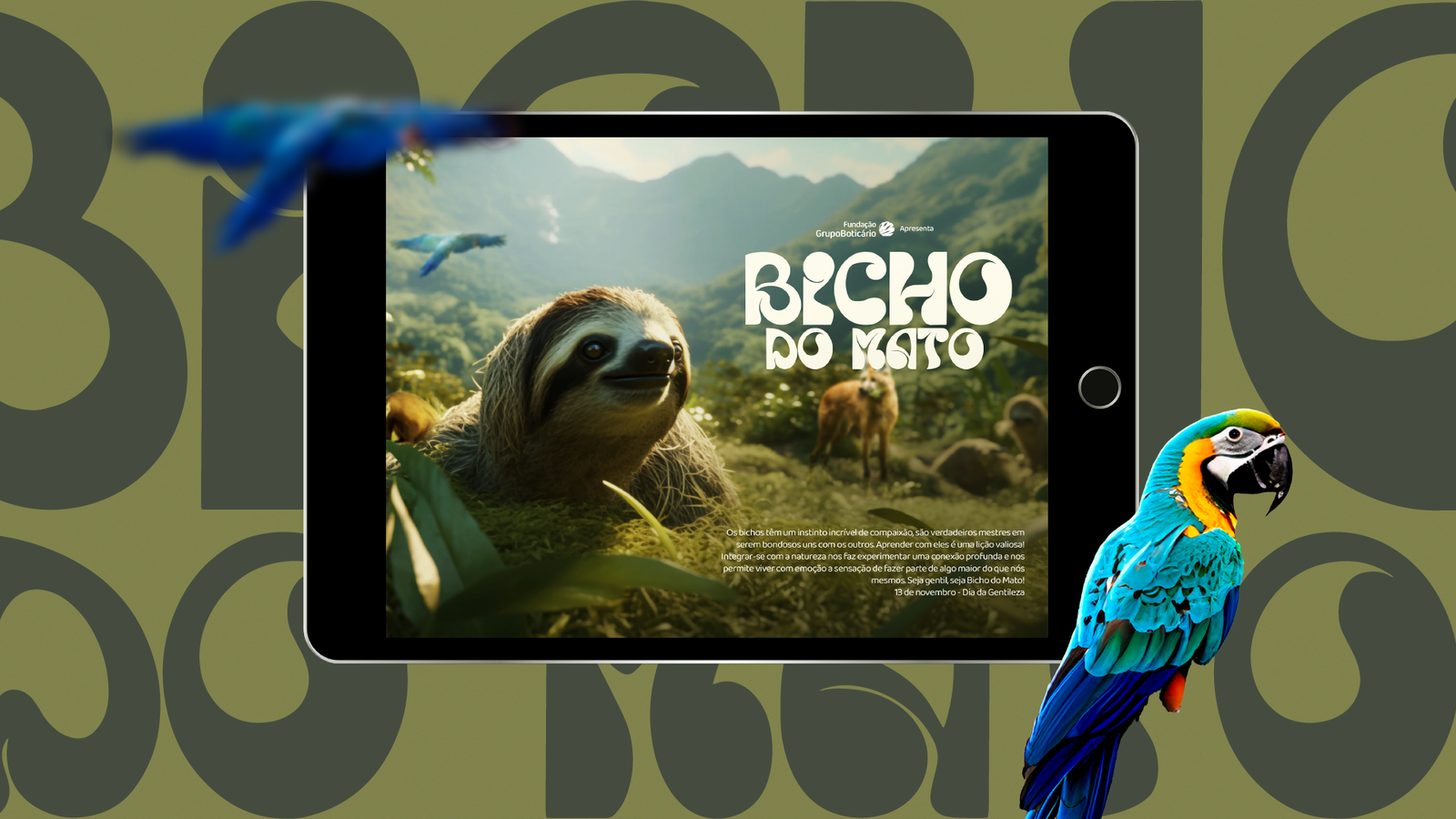 A campanha “Bicho do Mato” foi marcada por uma identidade visual dinâmica e envolvente, que combinou elementos naturais com tecnologia de Inteligência Artificial. A escolha cuidadosa dos animais representativos dos biomas brasileiros, aliada à utilização da IA para criar uma narrativa visual moderna, permitiu à campanha destacar-se pela sua inovação e relevância.