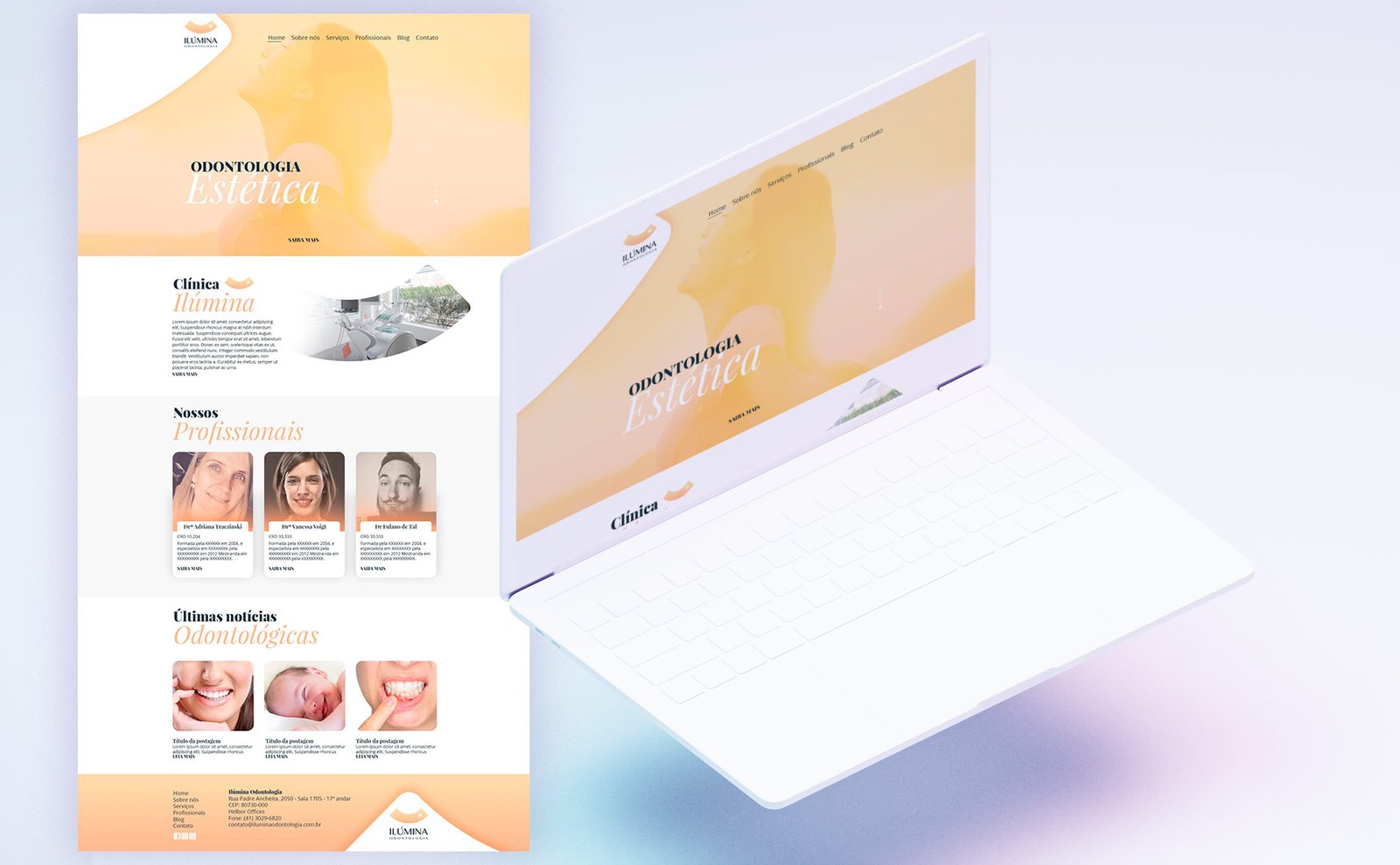 Especialmente na área da saúde, cada cuidado deve ser tomado para passar confiança e segurança ao paciente. Referência em Dentista no Bigorrilho, para a Ilúmina Odontologia criamos o naming, marca, materiais de papelaria, sinalização interna e externa e o seu primeiro site.
